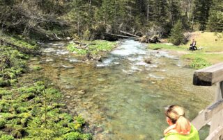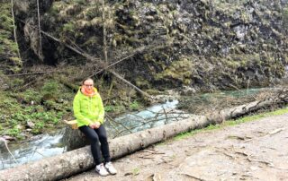 I tak też szliśmy przed siebie, mijając cudowne, wielkie drzewa, spienione potoki, rozbijające się o ogromne kamulce, spoglądaliśmy na śnieżnobiałe obłoki, przepływające po błękitnym niebie nad ośnieżonymi szczytami, wsłuchiwaliśmy się w szum drzew iglastych.